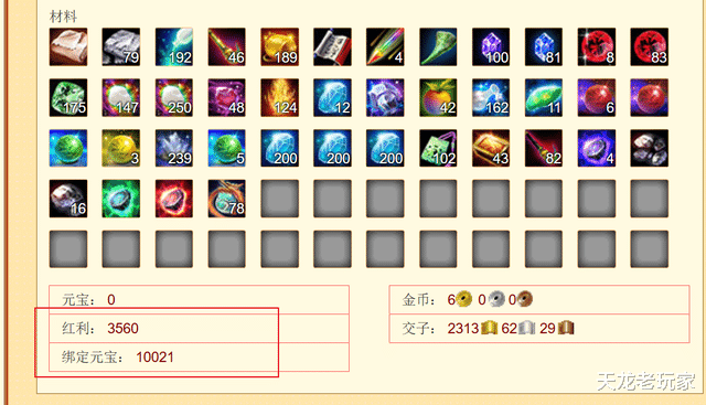 号上材料也不少,最重要的是还有3560的红利和10021的绑定元宝。