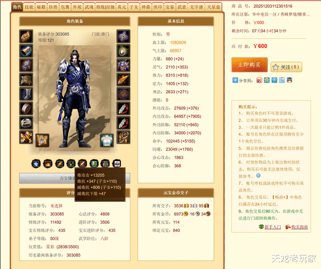 第三个号综合性价比也比较高,30万评分毒唐门,600元。